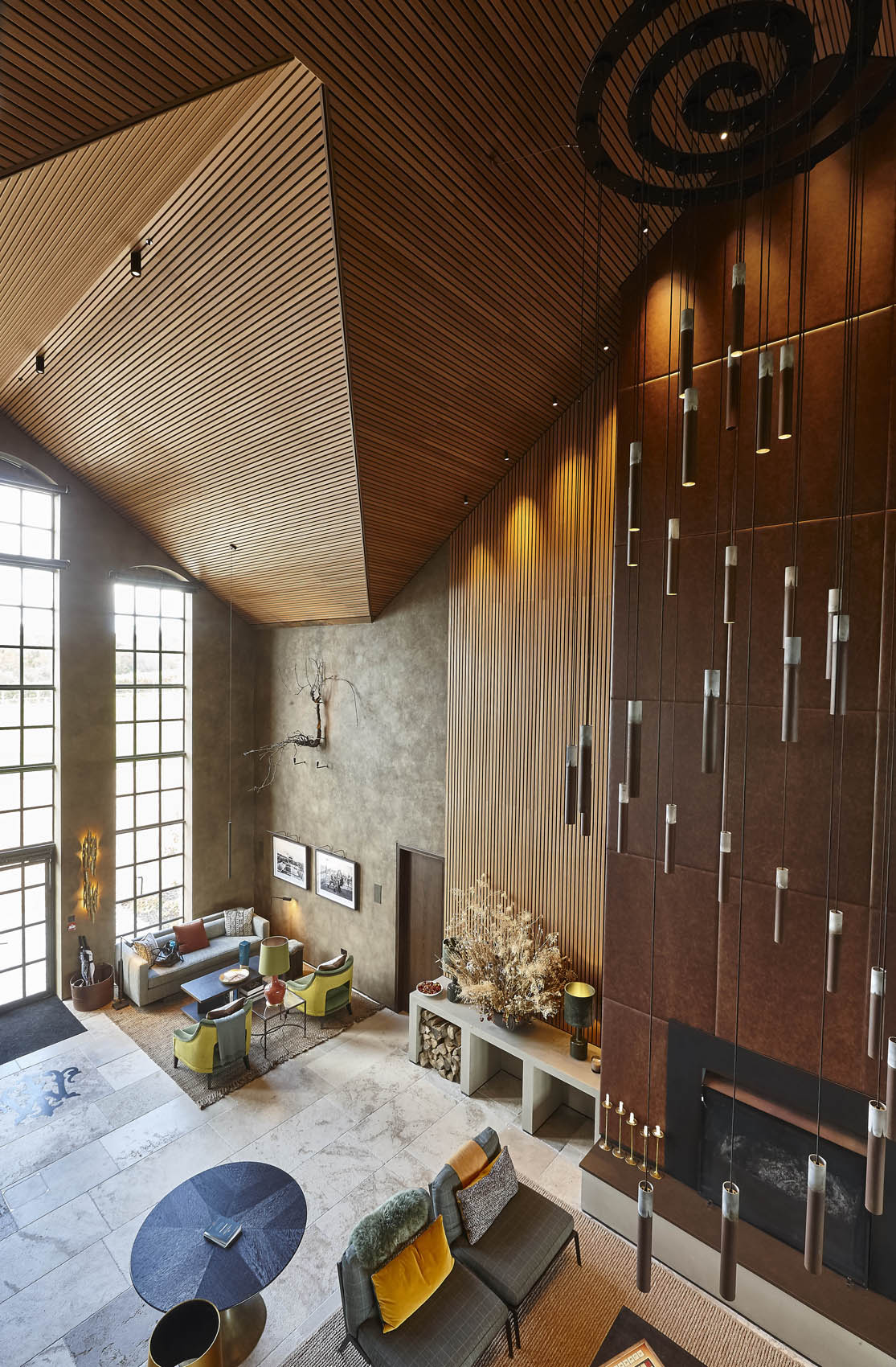 The materials used were carefully selected for their sustainability and ability to deliver the exquisite craftmanship outlined by the design team. In addition to the natural timber elements supplied by LSA, other internal architectural features include bespoke vaulted brickwork to the tasting room, leather panelled wall sections, textured limewash walls in the Great Hall as well as the dramatic curved staircase spanning all three levels of the building.